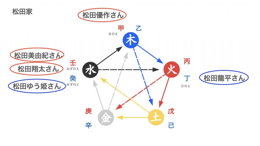 対応能力あり、大胆な行動をする妻、美由紀さんは、水のポジション。水なしでは、木(優作さん)は育ちません。何年もかけての優作さんへの思いは、大海のような大きな器を感じます。